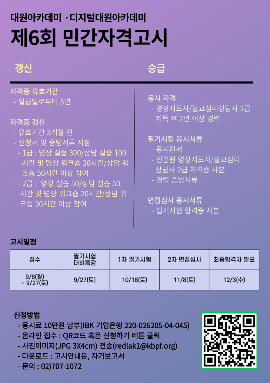 2025학년도 제6회 민간자격고시를 아래와 같이 실시합니다.